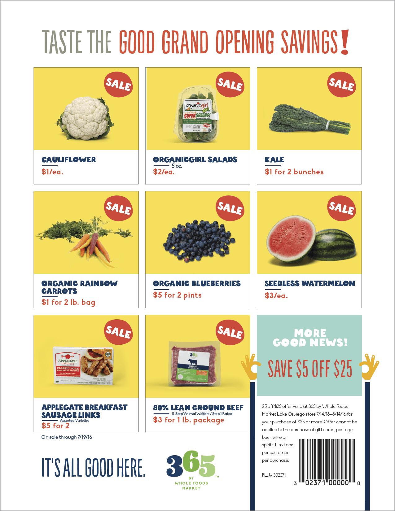 Targeted direct mail for 365 by Whole Foods Bellevue Grand Opening